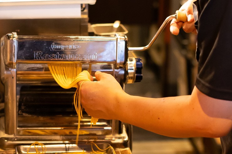 目の前で製麺して作る、【ラザニア&贅沢トリュフのタリオリーニのスペシャリテ手打ちパスタ】が今年のスペシャリテ。